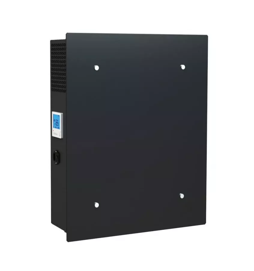 The metal housing is made of steel with a polymer coating and a decorative acrylic front panel. Initial and acoustic insulation is provided by a 10 mm layer of synthetic cellular rubber. The front panel provides convenient access to the filter and has a lock for added security. The device is equipped with two 100 mm spindles: fresh air inlet and exhaust air outlet. The third end 100 mm can be installed additionally to connect the ventilation duct from the bathroom. The fans have efficient electronically commutated (EC) motors with an external rotor and impellers with forward curved blades. The EC motor is characterized by very good operating parameters and optimal control over the full speed range. The efficiency of the electronically commutated motor reaches even 90%.
