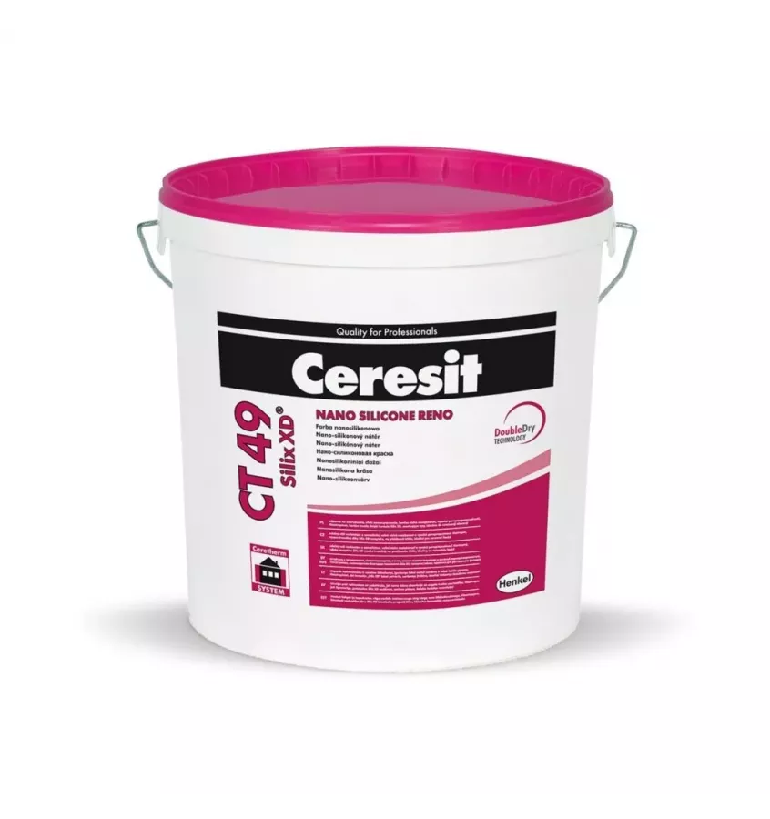 Ceresit CT 49 Silix XD nanosilicone paint reduces the possibility of water and contaminants penetrating the coating structure, while maintaining its very high vapor permeability. Ceresit CT 49 paint is intended for internal and external use, and is especially recommended for painting surfaces exposed to harmful weather conditions (e.g. acid rain), places exposed to biological corrosion and where durability and high resistance are required. to dirt as well as the flexibility of the coating and resistance to abrasion. It can be used on load-bearing mineral substrates, such as cement, cement-lime and lime plasters, concrete, gypsum substrates, etc. It is especially recommended to use CT 49 on facades of historic buildings, on renovation and aerated plasters.