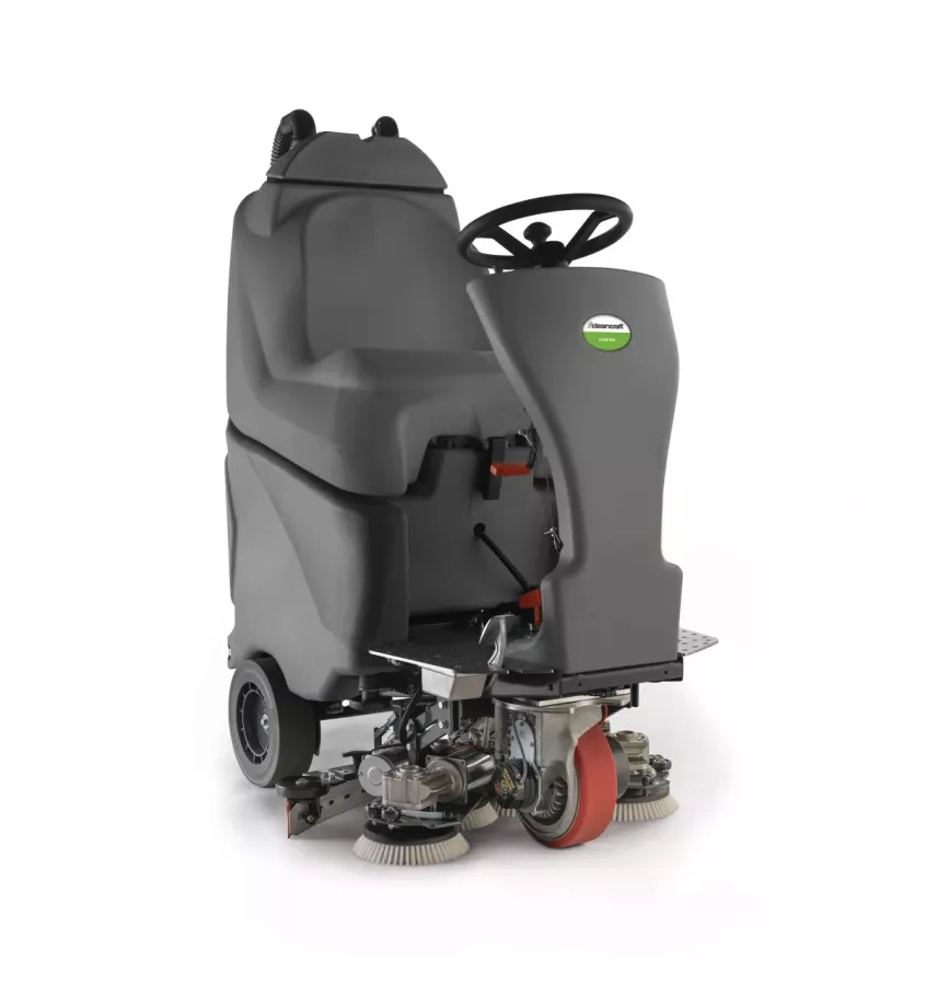 - Mechaniczna obsługa szczotki, ssawy i ilości wody za pomocą dźwigni