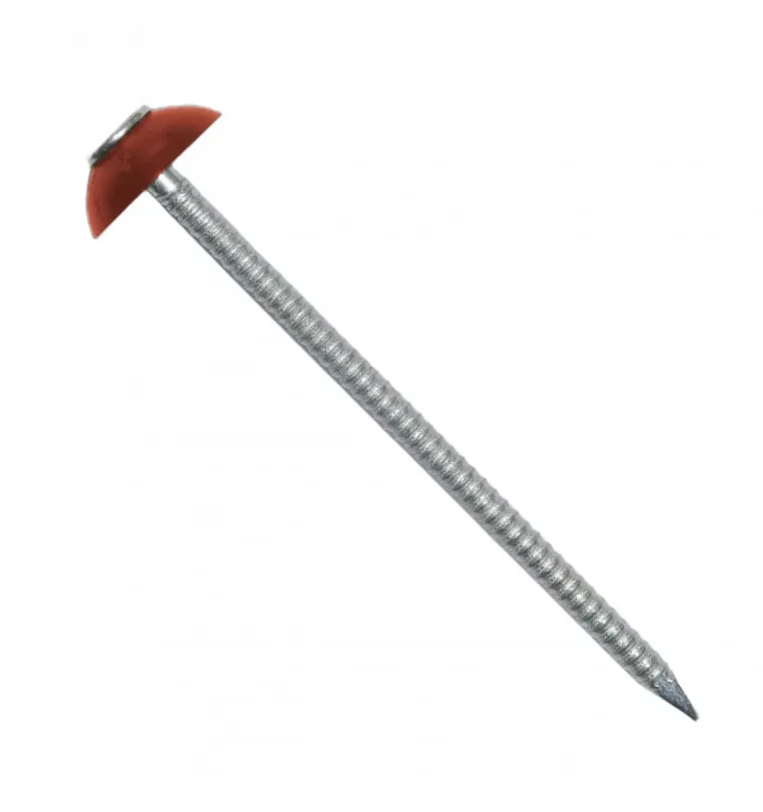 The nail with a flat, weather-resistant polyethylene gasket and hot-dip galvanized mandrel has an extremely high pull-out strength.