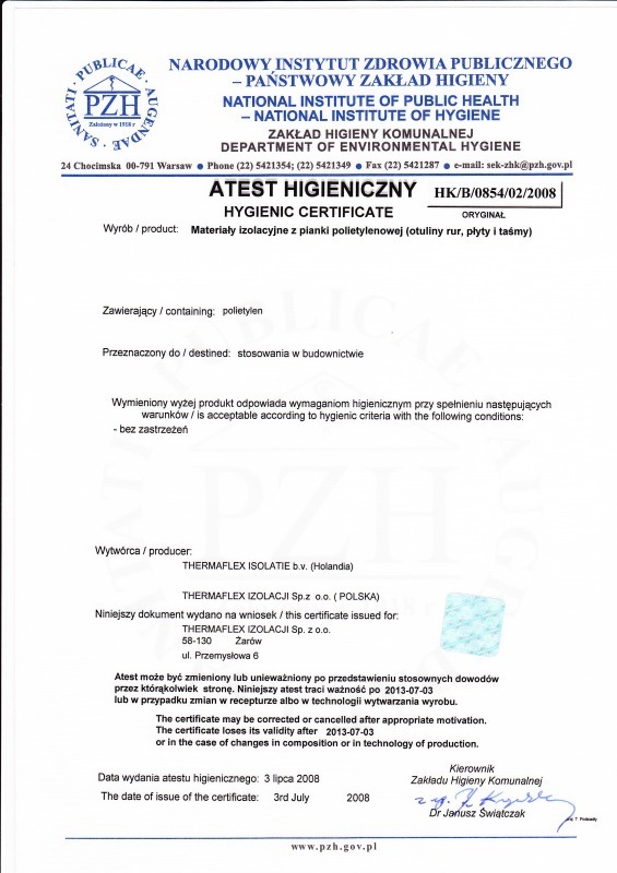 Thermaflex otulina Thermacompact IS - Atest Higieniczny
