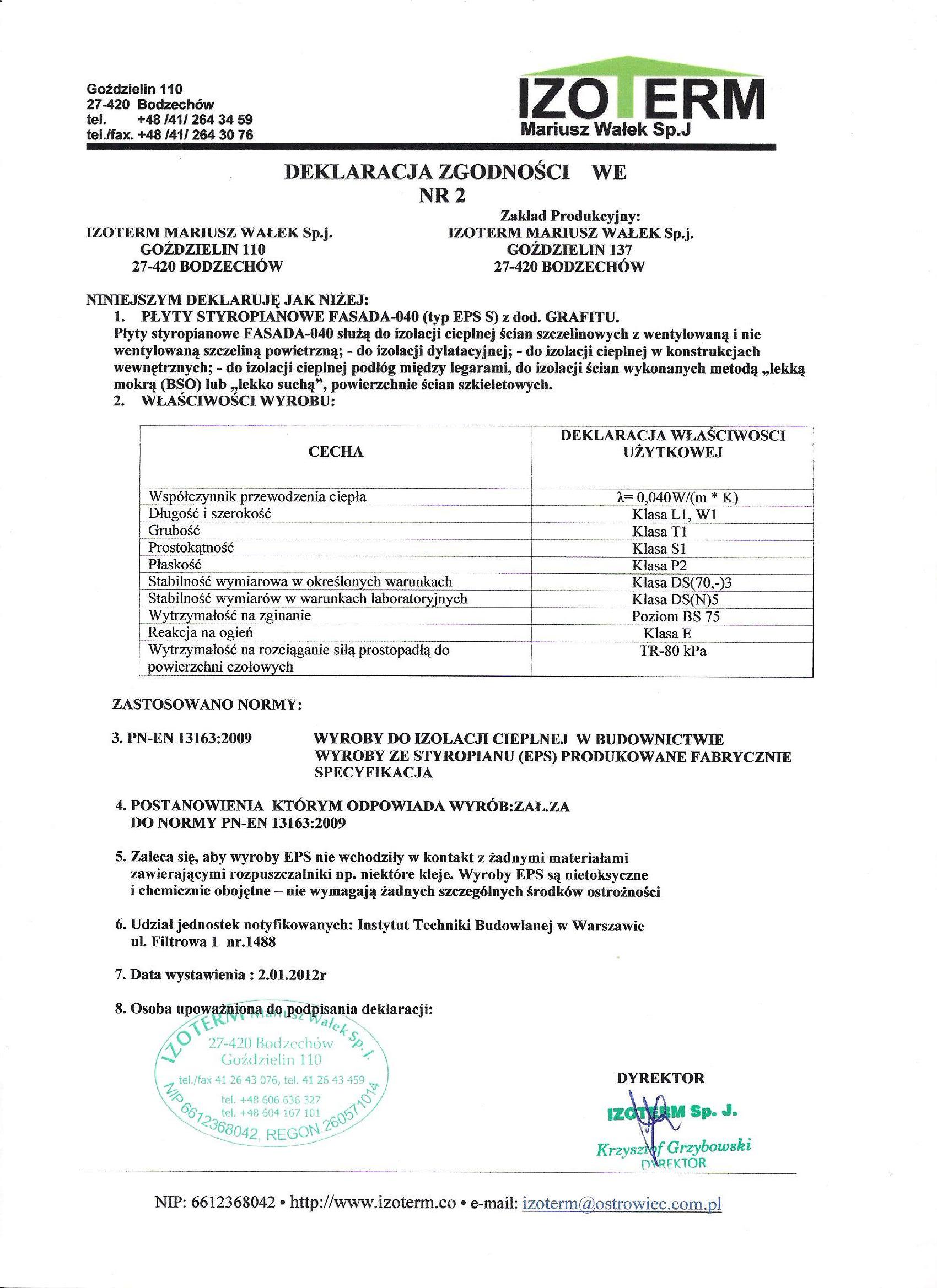 Izoterm Deklaracje Zgodności EPS 040 Fasada