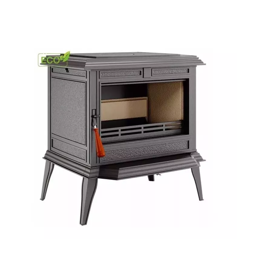 Piec kominkowy wolnostojący na drewno, wykonany z żeliwa wermikularnego, zgodny z wymogami ekoprojektu.