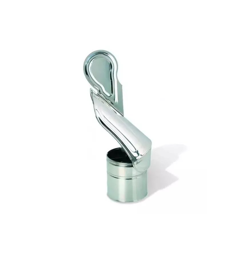 Fireman - chimney cowl made of 1.4404 stainless steel. Its main application is to support the gravitational chimney draft by creating a vacuum when the wind blows over the base. It sets its head towards the wind direction, thereby covering the chimney opening. The fireman can be used for both chimneys in ventilation and flue gas. Installation on the chimney to which the fireplace is connected and the fuel is wood is acceptable. Firefighter occurs in diameters from fi 100 to fi 350 mm. It is also possible to produce other diameters on special customer orders.