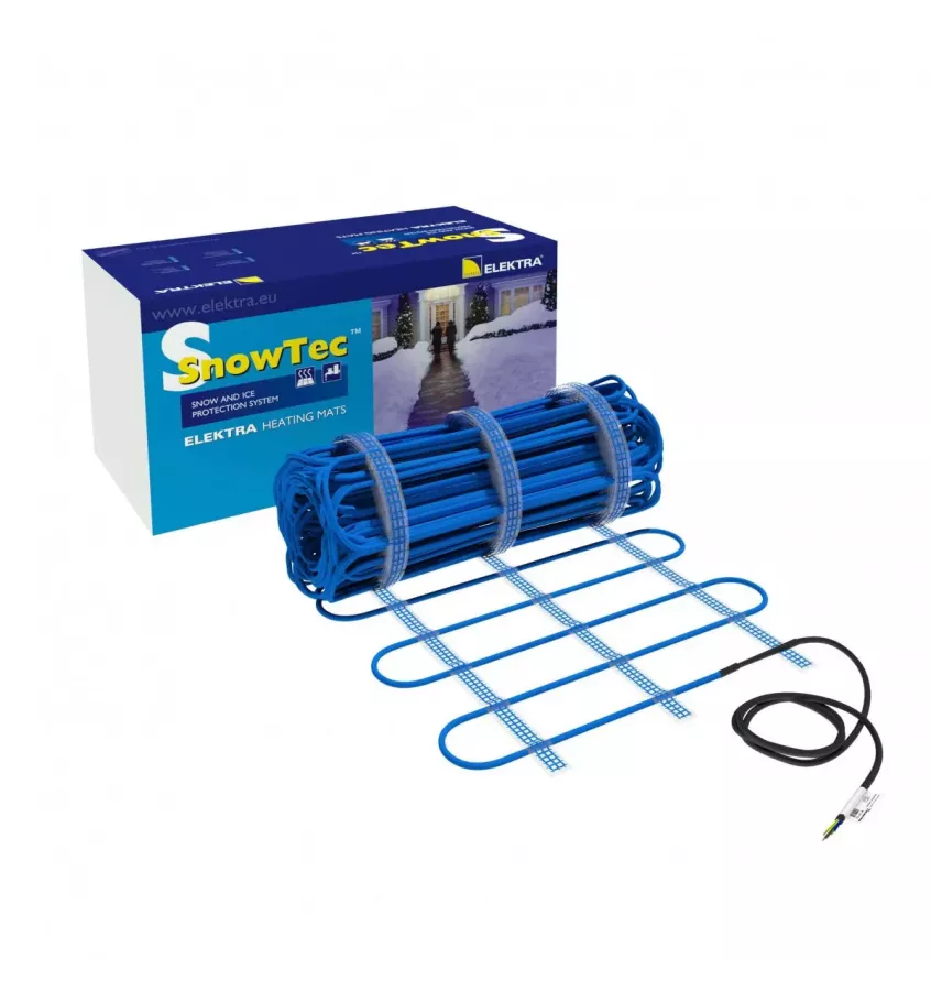 Mata grzewcza wykonana z przewodu grzejnego jednostronnie zasilanego o mocy jednostkowej 30 W/m. Rozstaw między przewodami wynosi 10 cm. Jest doskonałym rozwiązaniem wszędzie tam, gdzie zachodzi konieczność zabezpieczenia różnych powierzchni przed oblodzeniem lub zaśnieżeniem. Duża moc powierzchniowa maty gwarantuje, że nawet w warunkach śnieżnej zimy ogrzewane powierzchnie pozostaną wolne od lodu i śniegu. System grzewczy Elektra SnowTec można stosować do ogrzewania ramp, podjazdów, chodników, tarasów itp., wykonanych z kostki brukowej lub z betonu.