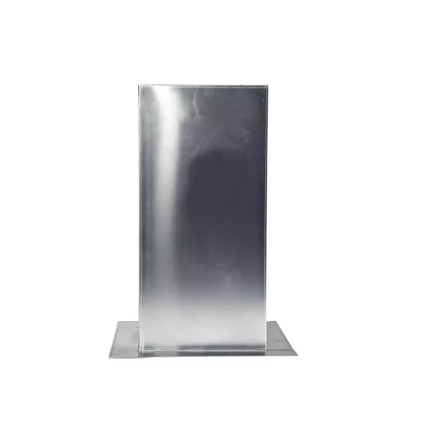 Damping roof base for installation on flat slopes, height 620 mm, with a damping shutter. It was made of profiled aluminum sheet. From the inside, mineral wool insulation that protects against condensation (30 mm).