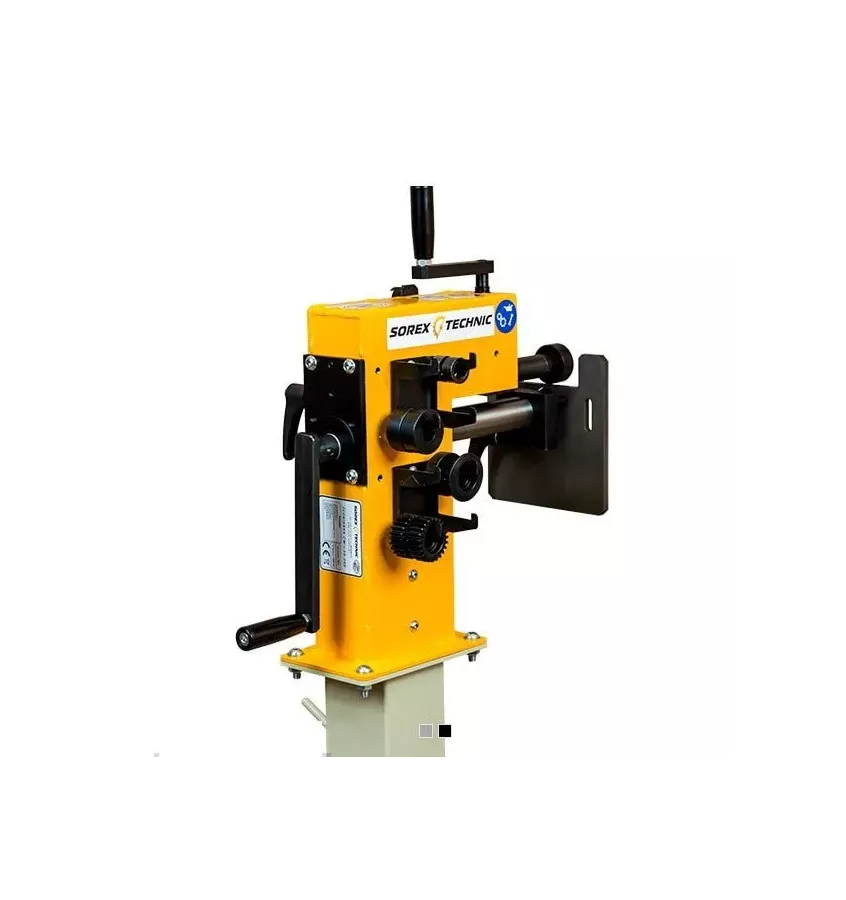 A grooving machine for gouging, grooving, bending, strengthening and rounding sheets. Ideally suited for work in tinsmithing, insulating, roofing and locksmith workshops.