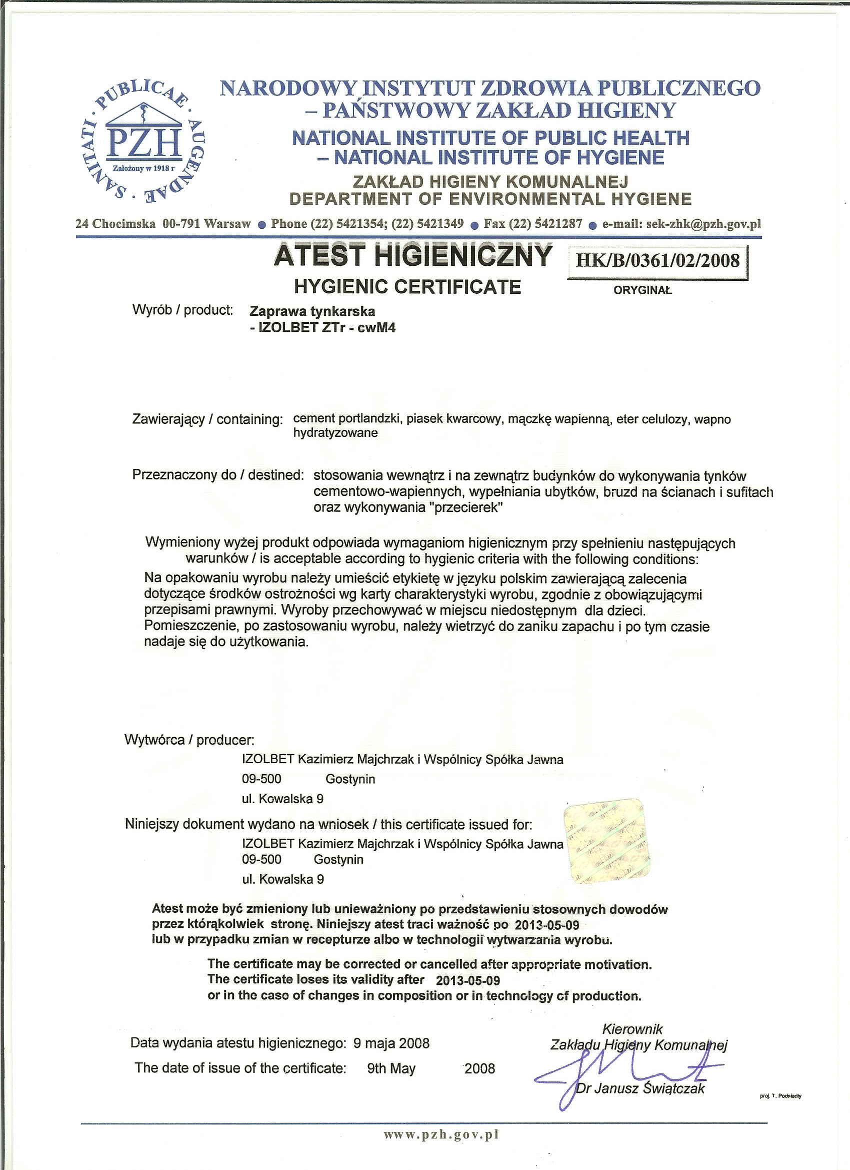 Download fileIzolbet zaprawa tynkarska ręczna ZTr-cwM4 Deklaracja Zgodności