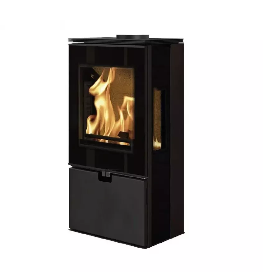 Black Wiesbaden wood stove with high heating performance (A +).