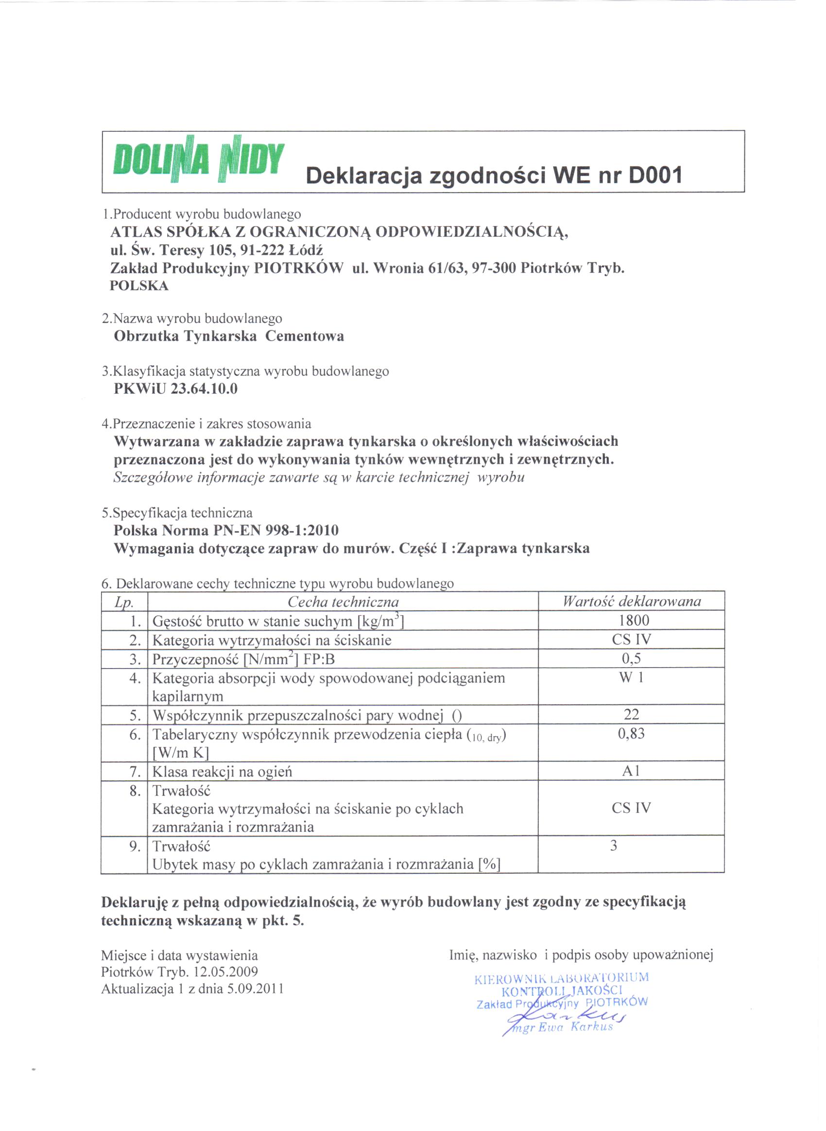 Download fileDoliny Nidy Obrzutka cementowa - Deklaracja zgodności