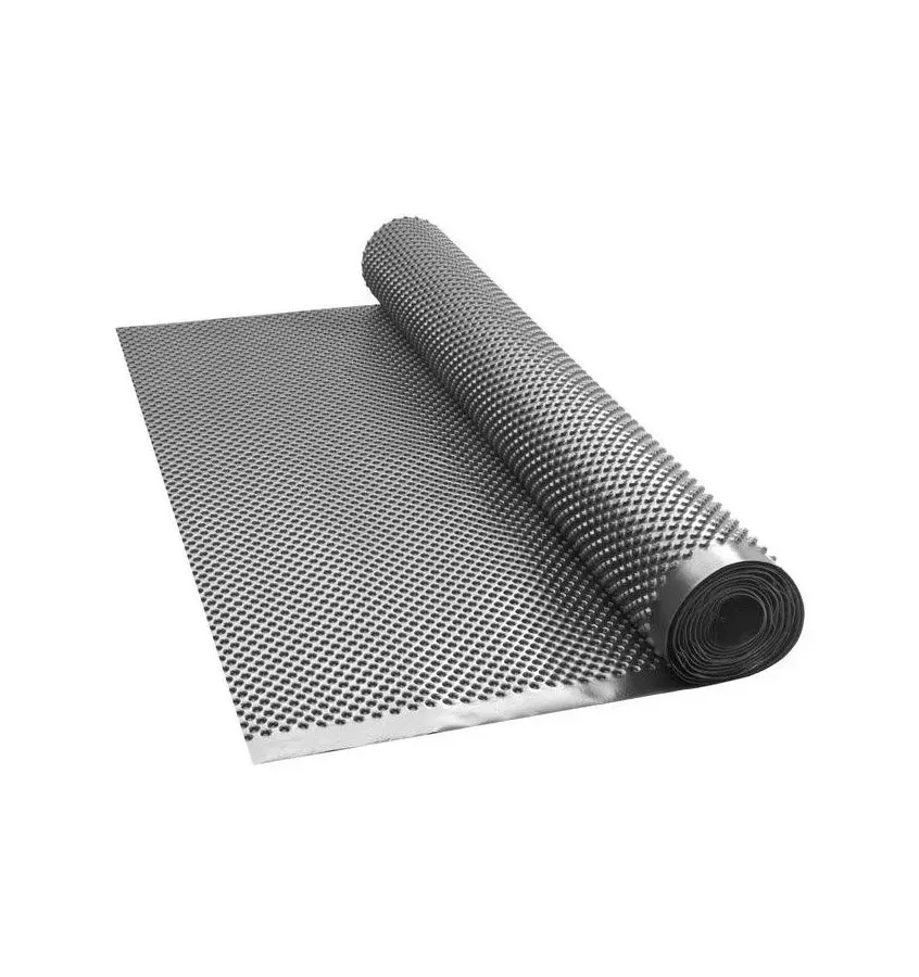 Extruded foundation film made of high density polyethylene (HDPE) with a diagonal embossing system. It is very resistant to crushing, provides ventilation of the area in which it is mounted and protects it against ground water and moisture. In addition, it creates a layer of thermal and sound insulation. It is resistant to acid, alkali, solvent, bacteria, fungus and plant roots.