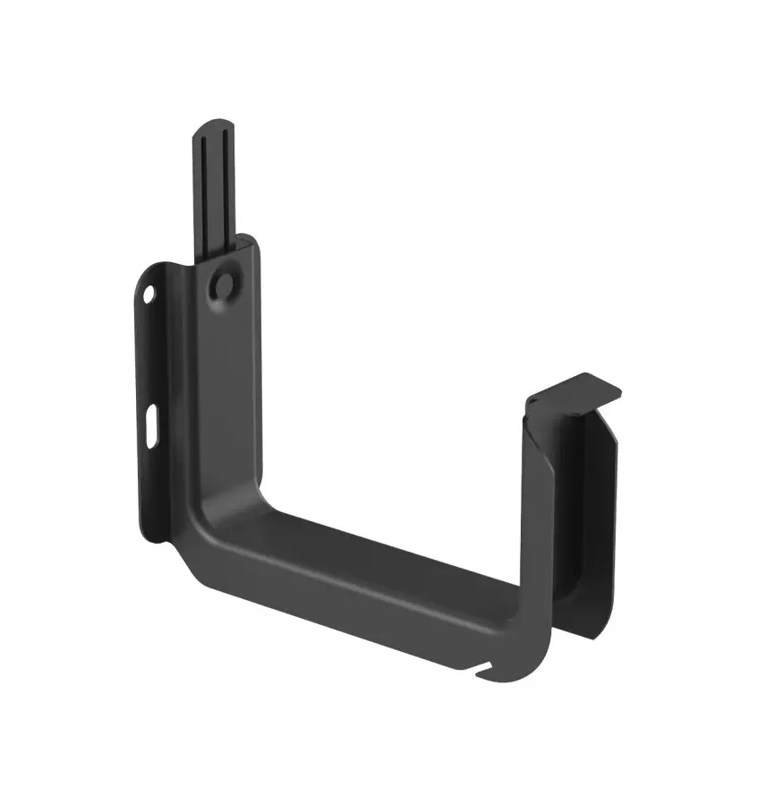 The metal butt plate hook is part of the STAL square system. Size 125mm / 80mm x 80mm. The product is available in three color variants.