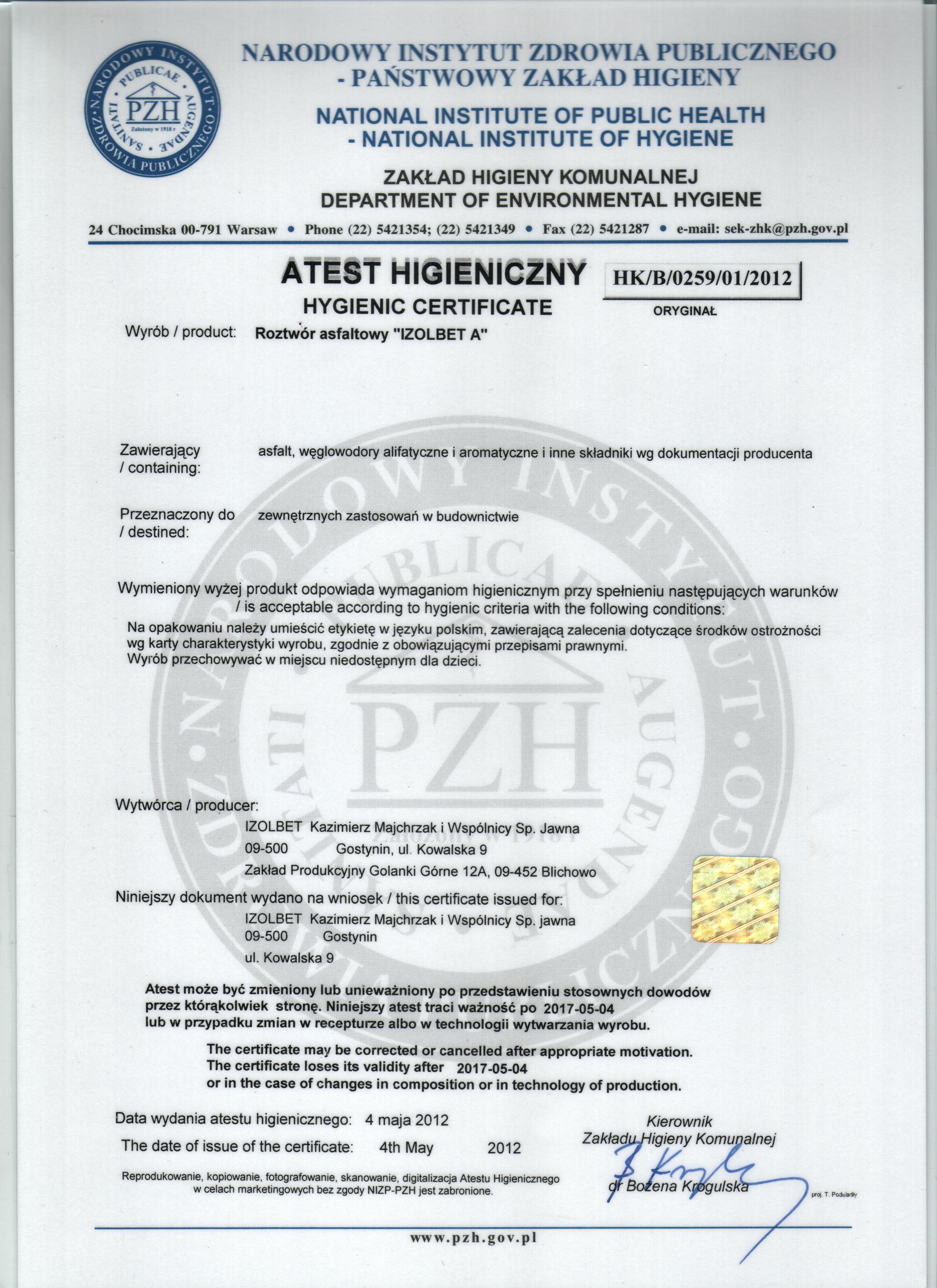 Download fileIzolbet roztwór asfaltowy gruntujący IZOLBET-A Certyfikat