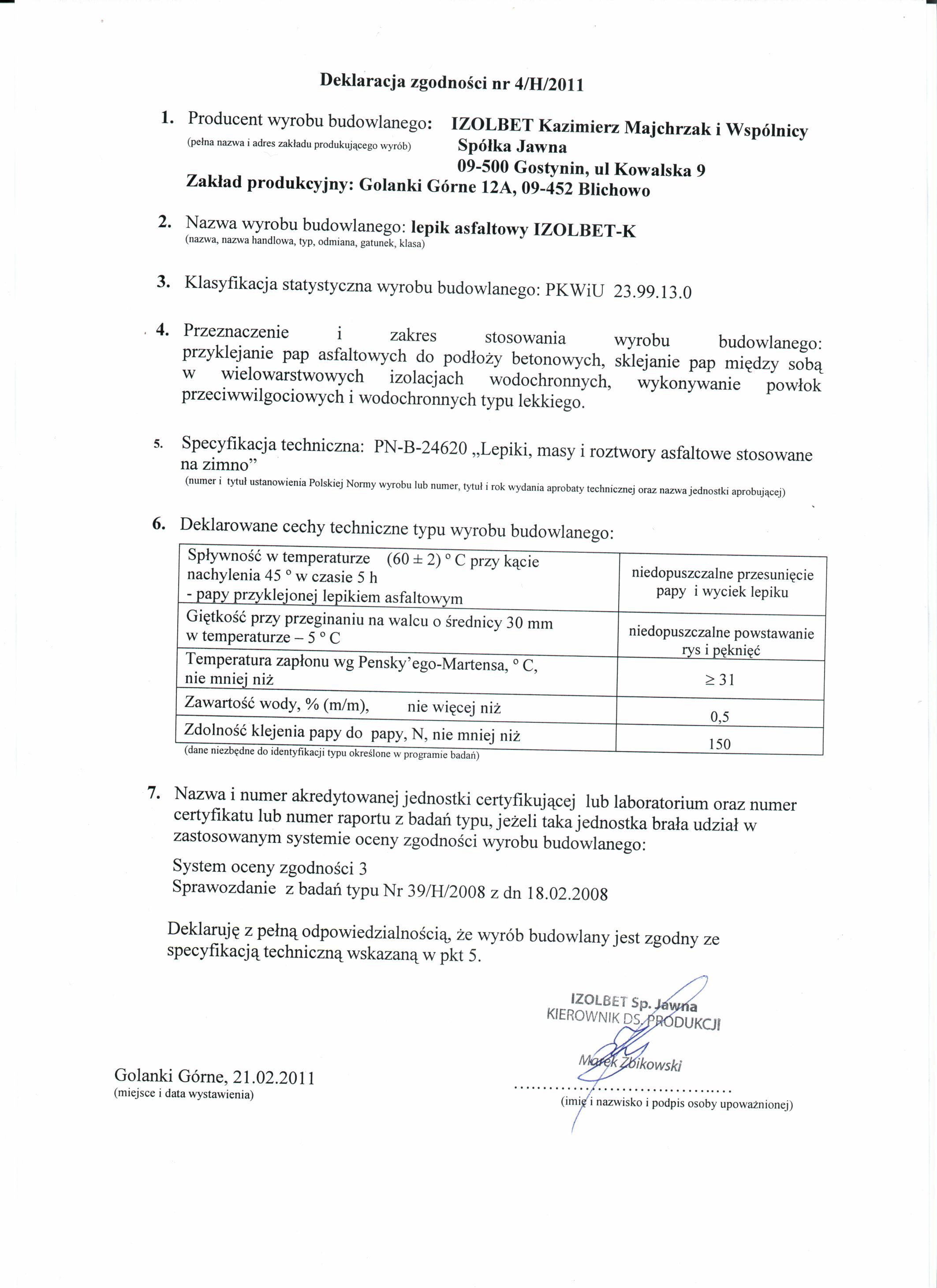 Download fileIzolbet lepik na zimno IZOLBET-K Deklaracja