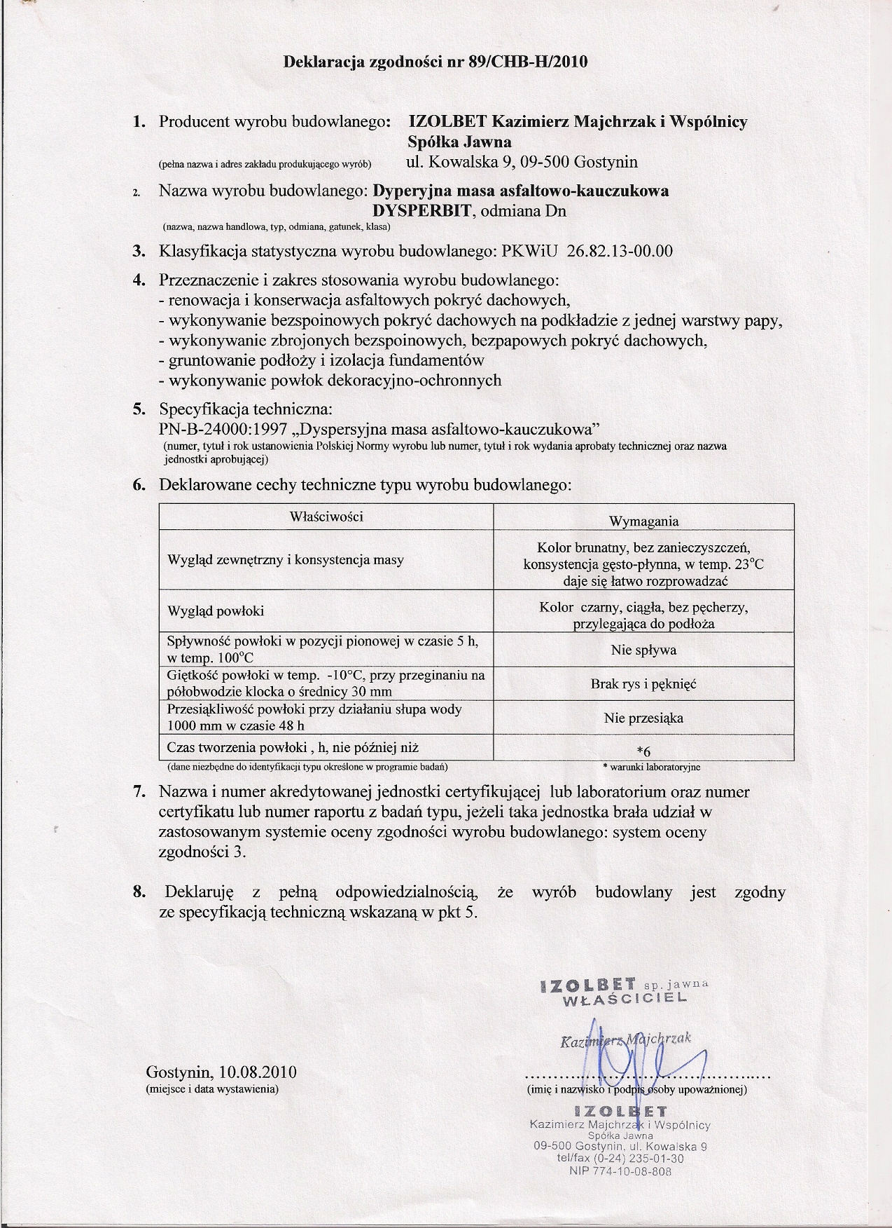 Download fileIzolbet DYSPERBIT Deklaracja Zgodności