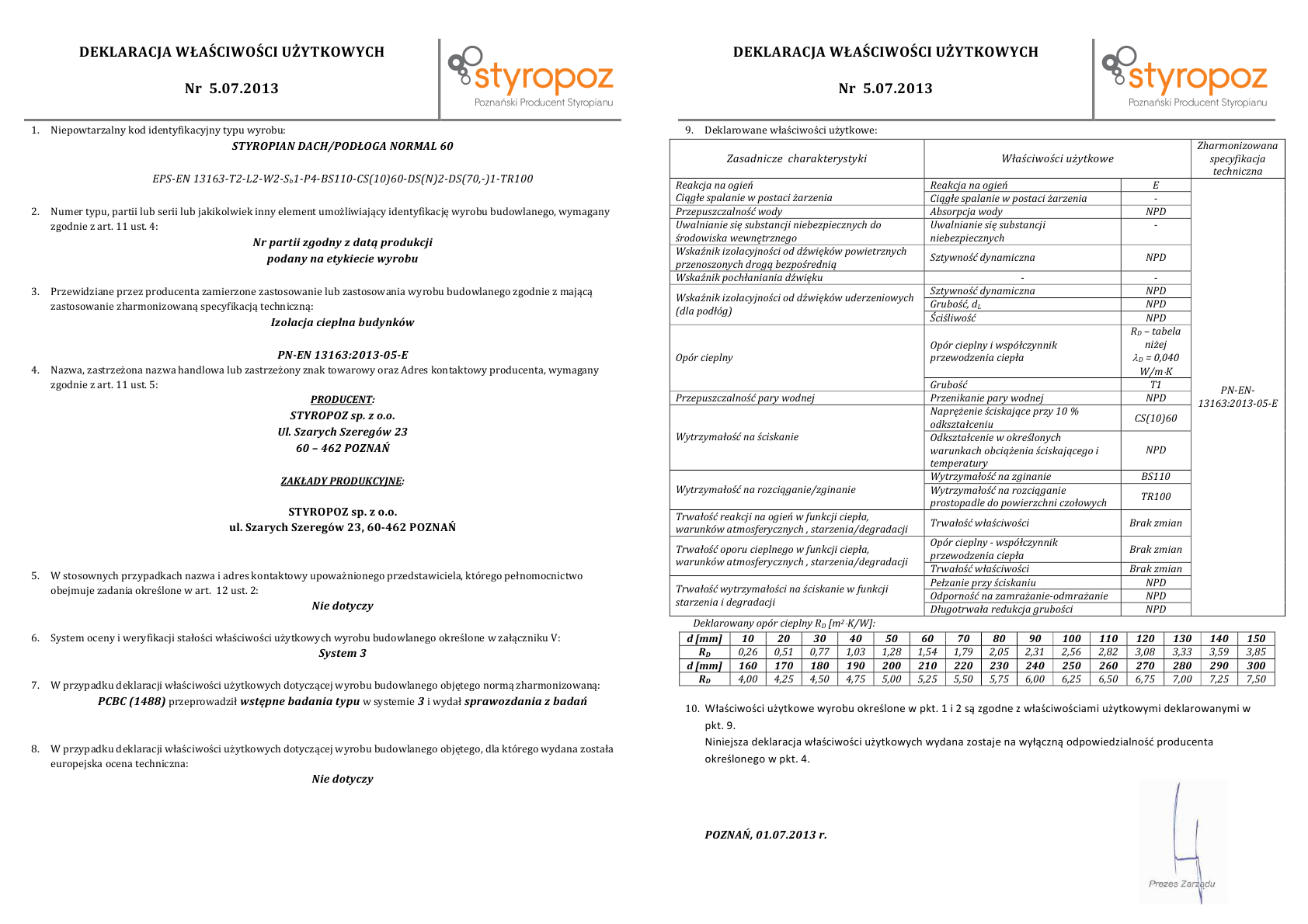 Deklaracja Zgodności Dach Podłoga Normal 60