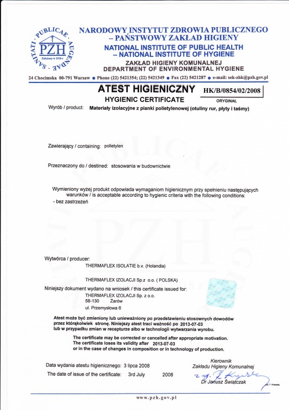 Thermaflex otulina Thermacompact TF - Atest Higieniczny