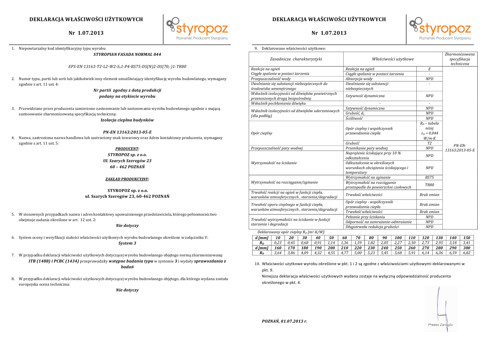 Deklaracja Zgodności Styropoz Fasada Normal 44