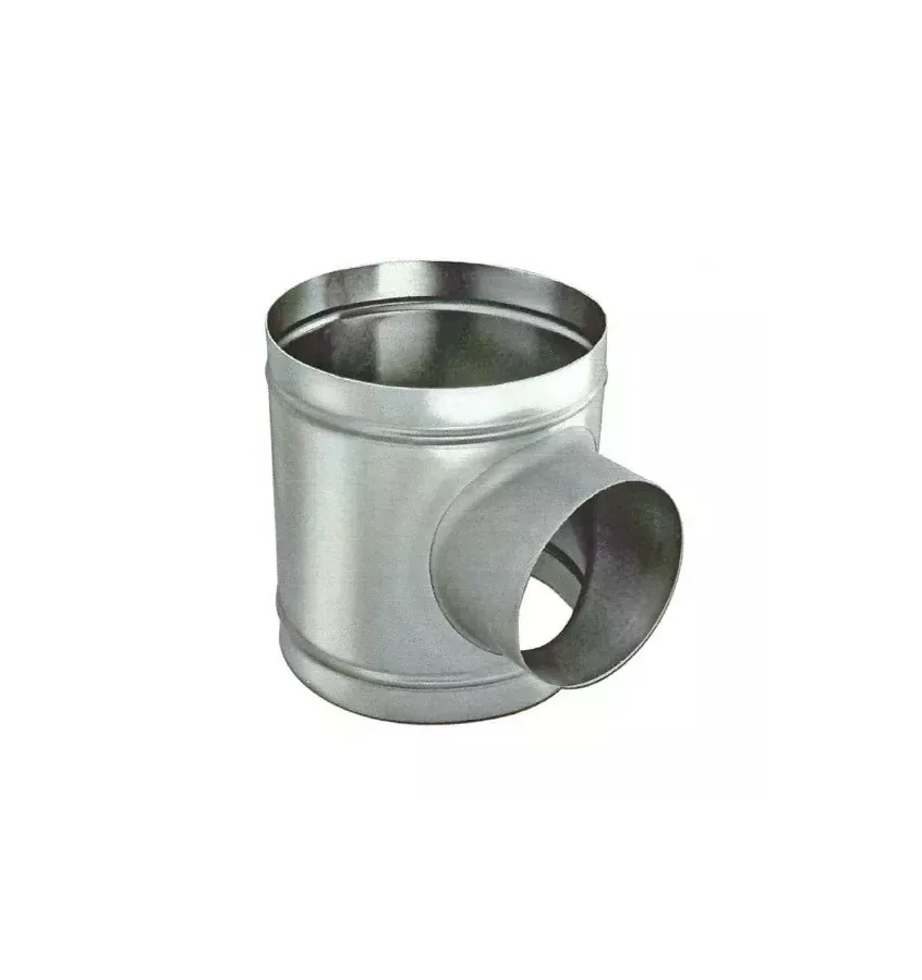 Symmetrical tee used for the construction of an additional outlet in round ducts of ventilation systems at an angle of 90 °.