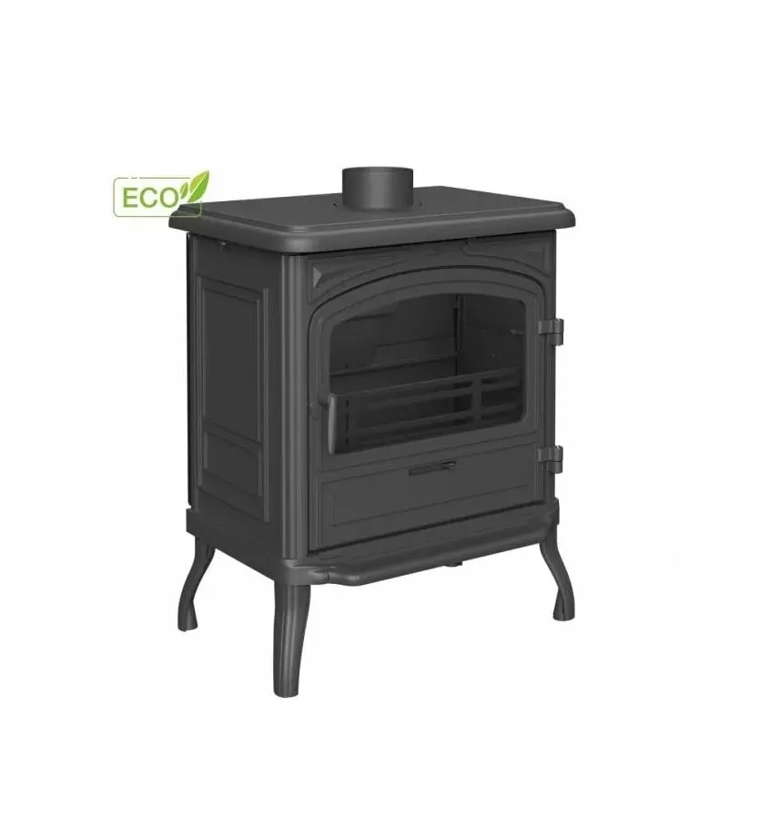 Piec kominkowy wolnostojący na drewno, wykonany z żeliwa wermikularnego. Zgodny z wymogami ekoprojektu.