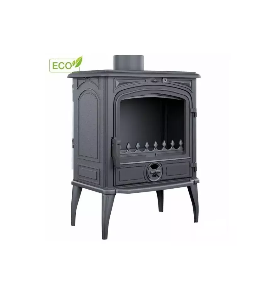 Piec kominkowy wolnostojący na drewno, wykonany z żeliwa wermikularnego. Zgodny z wymogami ekoprojektu.