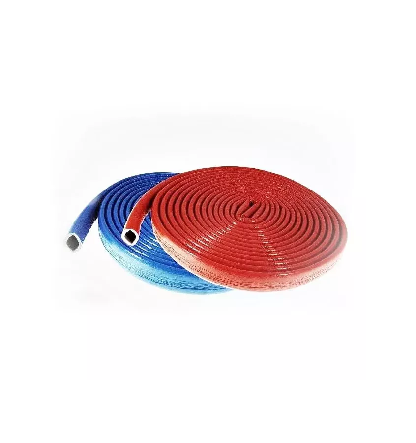 Coil cover made of polyethylene-based foam, which is a flexible insulating material with a closed cell structure. It reduces heat loss in plumbing and heating installations. The lagging has a factory-made cover in blue (6 mm insulation thickness) or red (4 and 6 mm thickness) - please specify the color in the comment to the order.