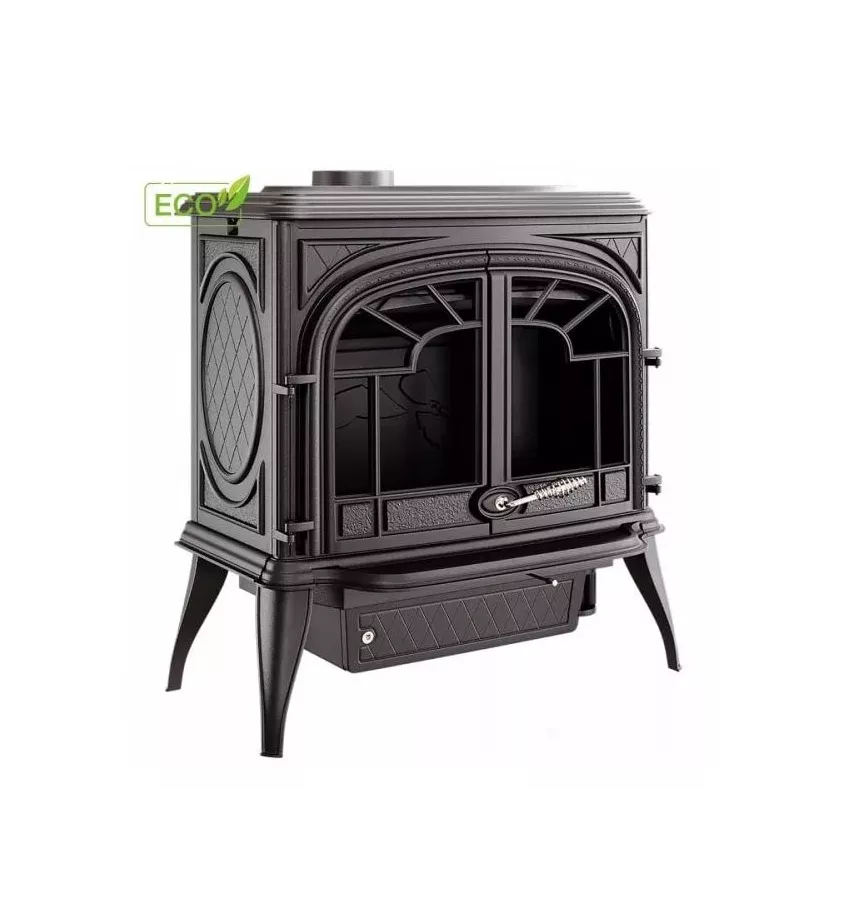 Piec kominkowy wolnostojący na drewno, wykonany z żeliwa wermikularnego. Zgodny z wymogami ekoprojektu.