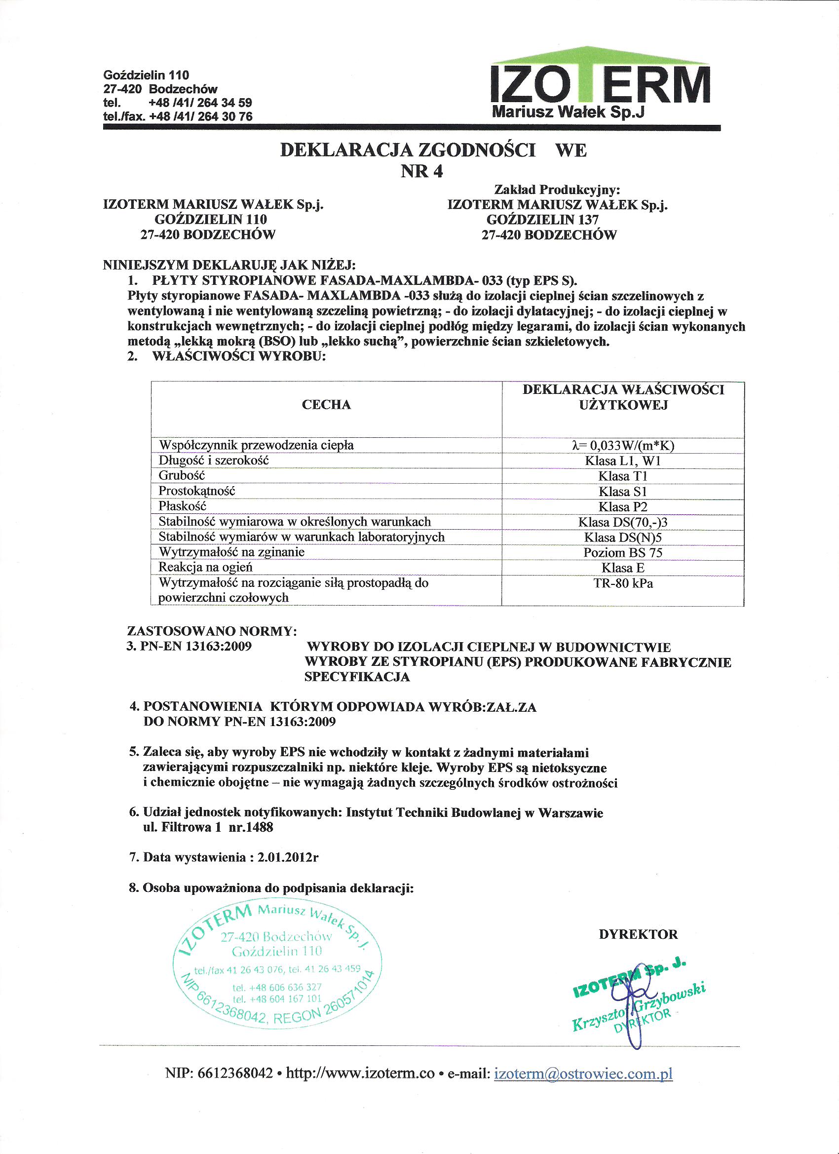 Izoterm Deklaracje Zgodności EPS 033 Maxlambda