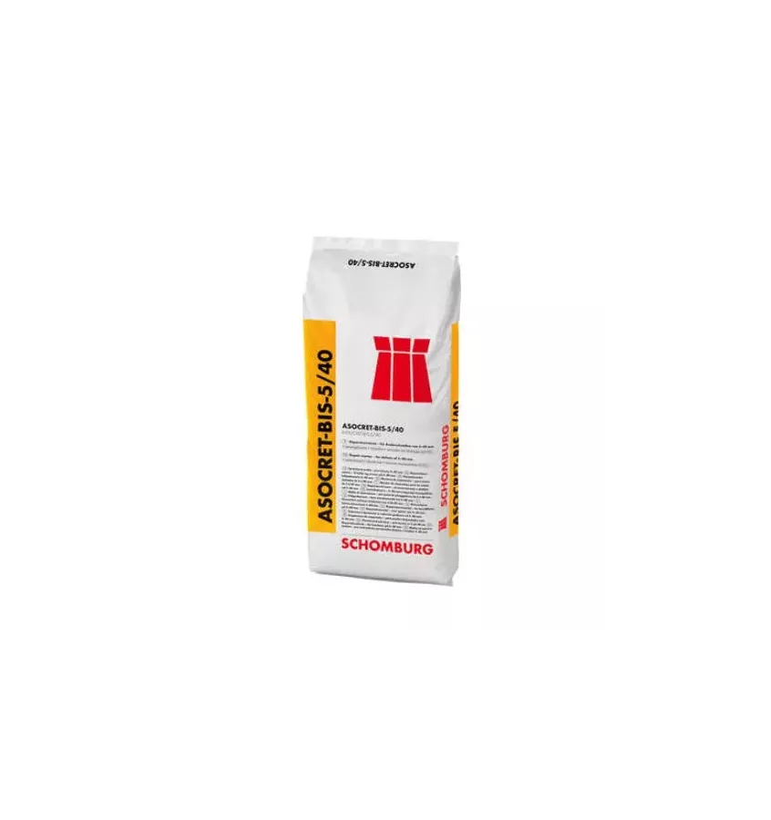 Asocret-BIS-5/40 is a PCC repair mortar with a grain size of 2 mm, used for structural and non-structural repairs of concrete - it fills cavities from 5 to 40 mm. Occurs as a cement-sand mixture ready for use, to be mixed with water only.