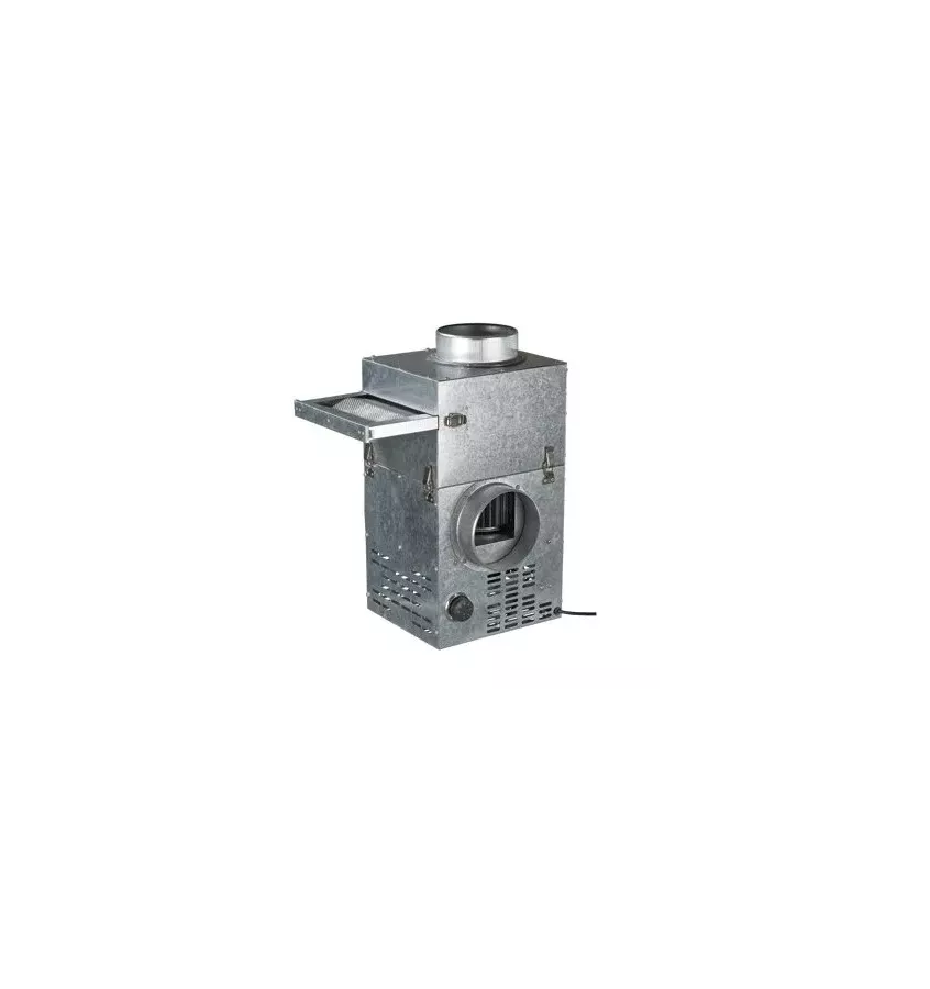 Removable metal filter for cleaning the conveyed air (class G3). Fastening the filter to the fan housing with snap locks provides easy access for maintenance and cleaning.