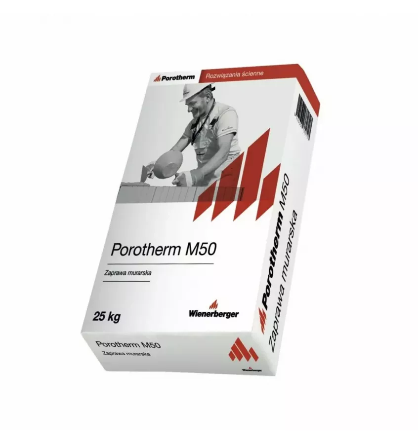 Porotherm M50 to zaprawa cementowo - wapienna, przeznaczona do zewnętrznych ścian dwu- i trójwarstwowych oraz ścian wewnętrznych. Jest wodo- i mrozoodporna.