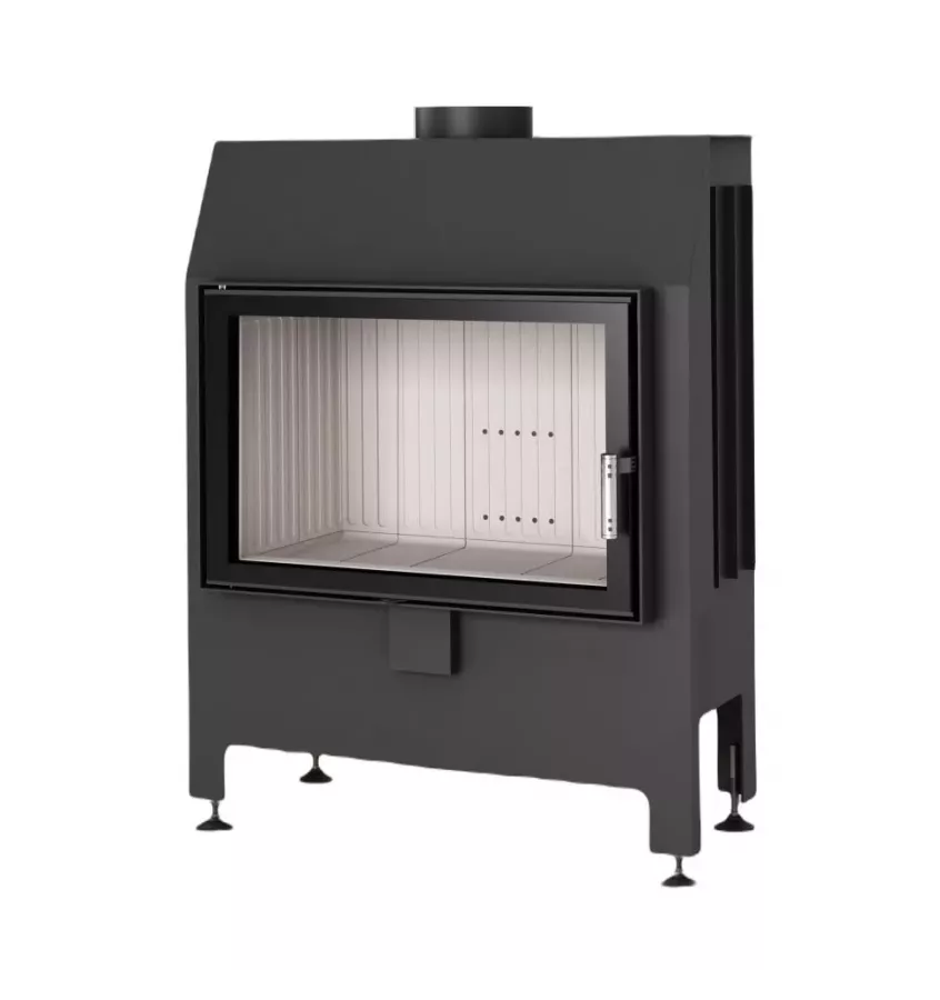Stalowy wkład kominkowy Heatro 69 z ceramiką akumulacyjną. Drzwiczki o pełnym przeszkleniu otwierane na bok. Kompaktowe wymiary i panoramiczna wizja ognia. Spełnia wymagania Ekoprojektu.