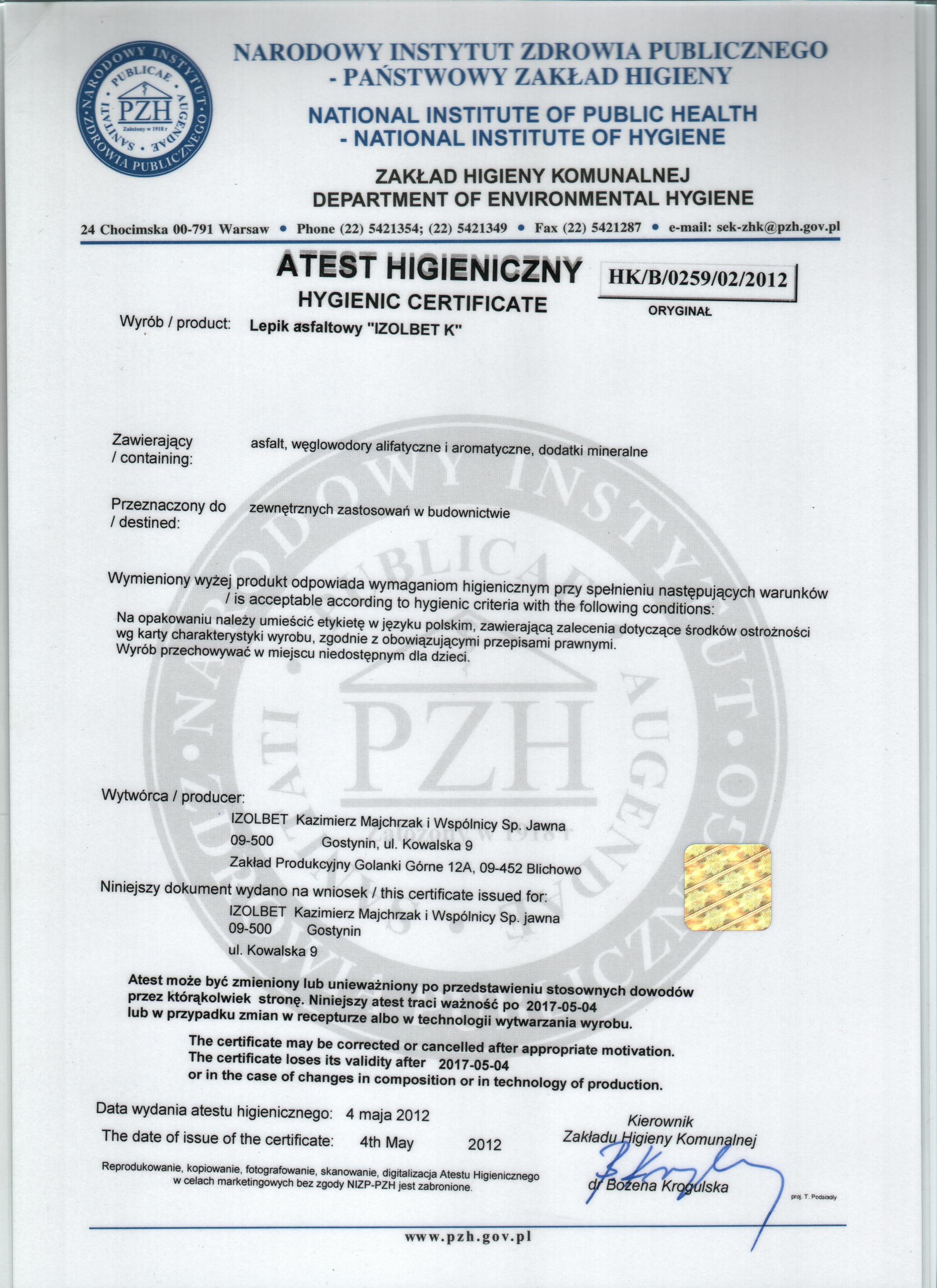 Pobierz plikIzolbet lepik na zimno IZOLBET-K Certyfikat