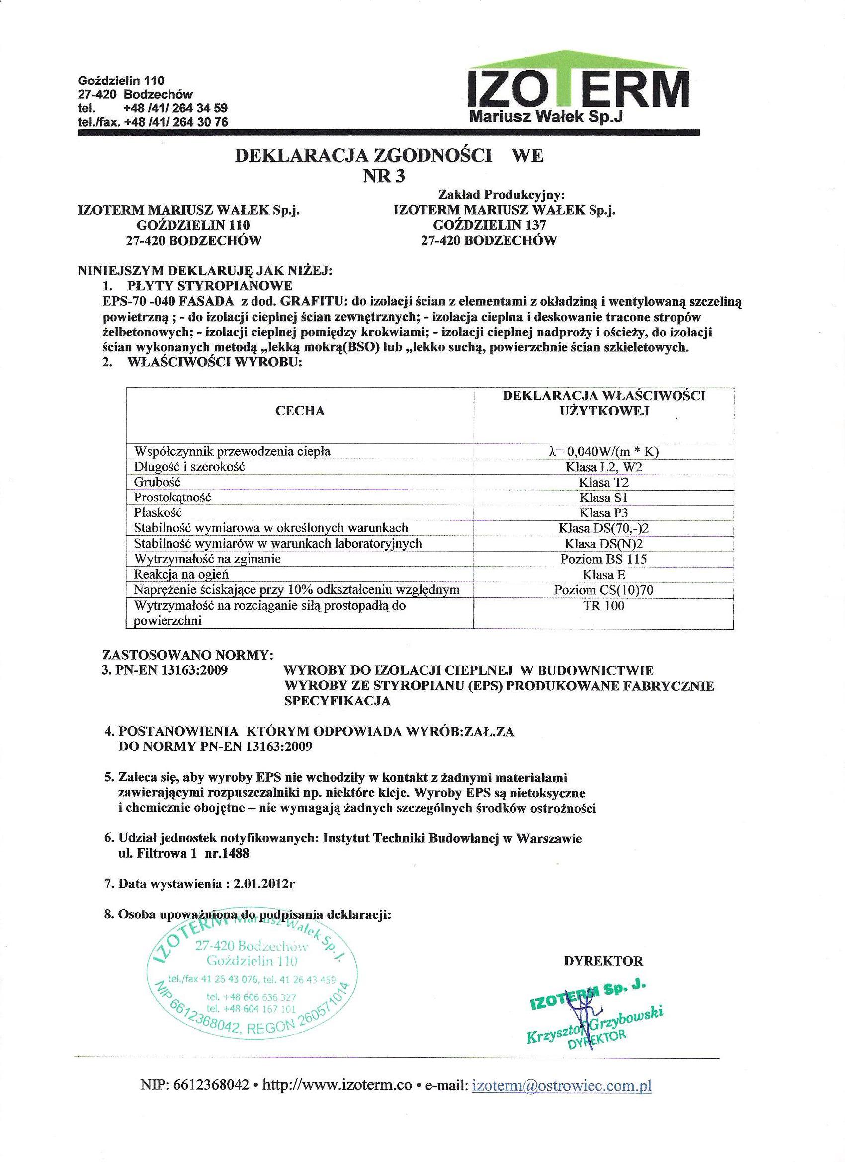 Izoterm Deklaracje Zgodności EPS 70 040 Fasada