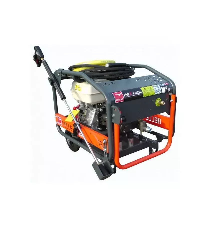 Wysokociśnieniowa myjka spalinowa na wodę zimną Altrad Belle WPX 13/230, przystosowana do pracy w trudnych warunkach. Na wyposażeniu wąż wysokociśnieniowy 10 mb z szybkozłączkami i złączami obrotowymi, lanca z pistoletem, wąż ssący z filtrem 3 m.