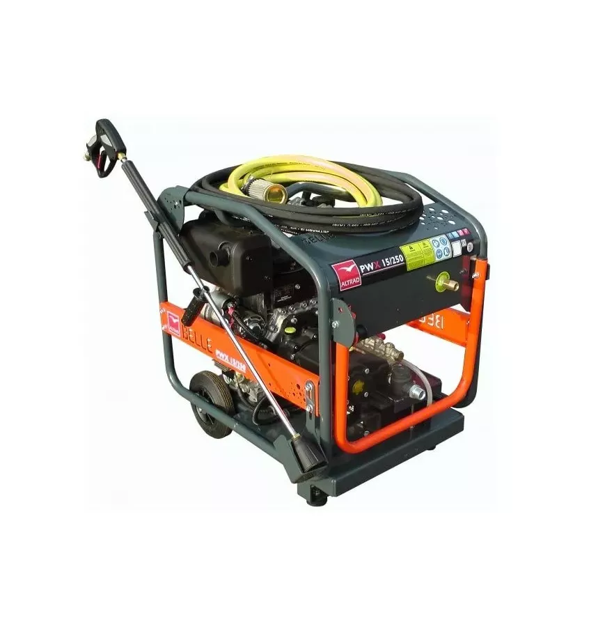 Wysokociśnieniowa myjka spalinowa na wodę zimną Altrad Belle WPX 15/250D, przystosowana do pracy w trudnych warunkach. Na wyposażeniu wąż wysokociśnieniowy 10 mb z szybkozłączkami i złączami obrotowymi, lanca z pistoletem, wąż ssący z filtrem 3 m.