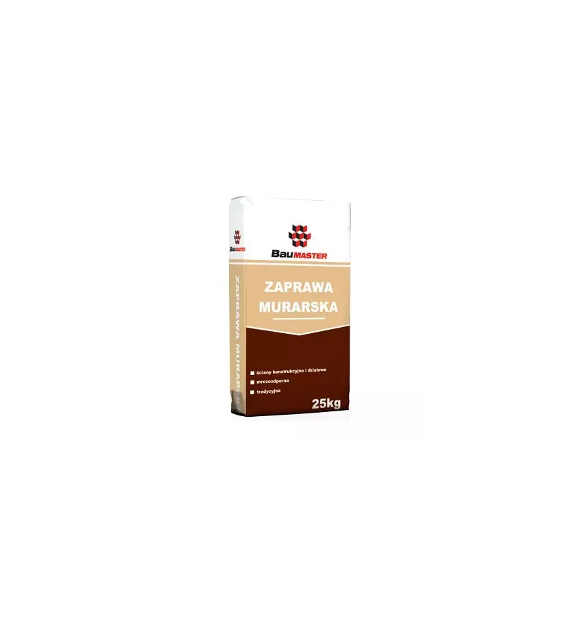 Cementowa zaprawa do tradycyjnego wykonywania robót murarskich wewnątrz i na zewnątrz budynków. Zaprawa murarska Baumaster jest doskonałym materiałem przeznaczonym do prac budowlanych, remontowych i wykończeniowych w budownictwie. Przeznaczona jest do wznoszenia murów budynków z cegieł, bloczków ceramicznych, betonowych i wapienno-piaskowych, murowania fundamentów i sklepień cienkościennych, oraz do wykonywania obrzutki pod tynki wewnętrzne i zewnętrzne.